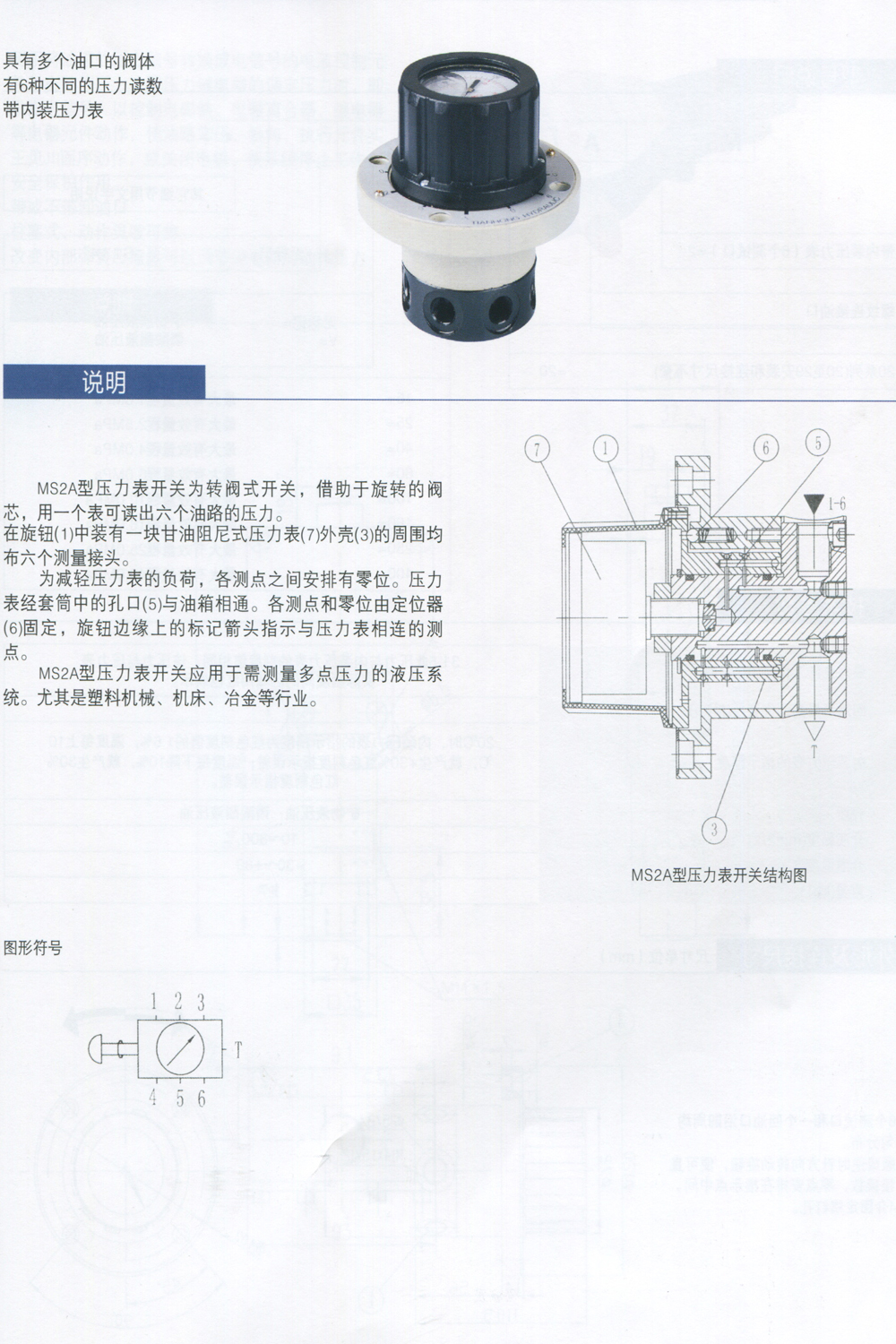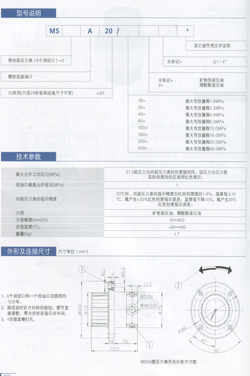 MS2A20/60 G1/4 MS2A/160/G1/4 MS2A/100/M14*1.5 六点压力表,