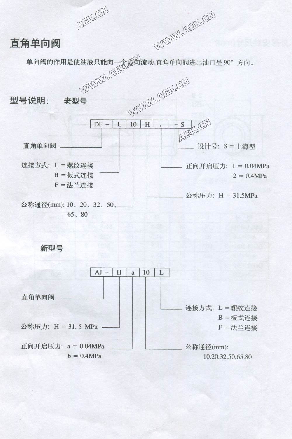 AJ单向阀,AJ-H10L,AJ-H20L,AJ-H32L,直角单向阀