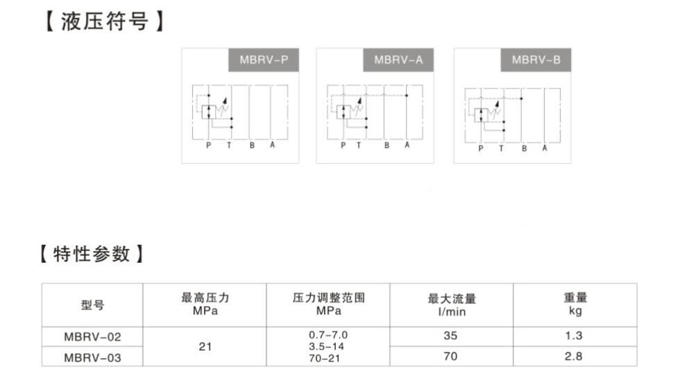 叠加式减压阀 MBRV-03P、MBRV-03A、 MBRV-03B