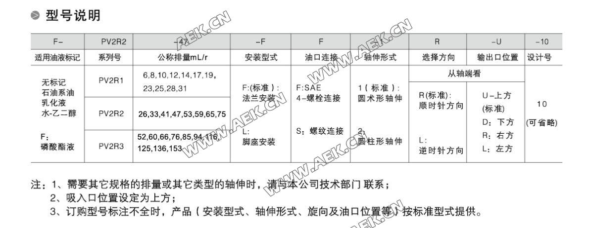 PV2R油泵,PV2R2-26-F-R-AA,PV2R2-33-F-R-AA,PV2R2-41-F-R-AA,PV2R2-53-F-R-AA,PV2R2-59-F-R-AA,PV2R2-65-F-R-AA