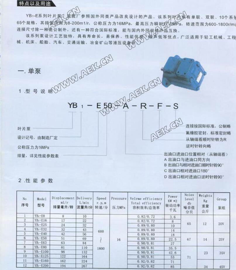 YBE油泵,YBE单联油泵,YB1-E8,YB1-E16,YB1-E25,YB1-E32