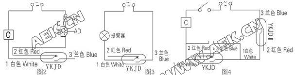 2、图3是用在液压站油箱上作液面控制报警发讯装置,当液面低于要求时,液位控制继电器动作:1与3接通,报警器工作。