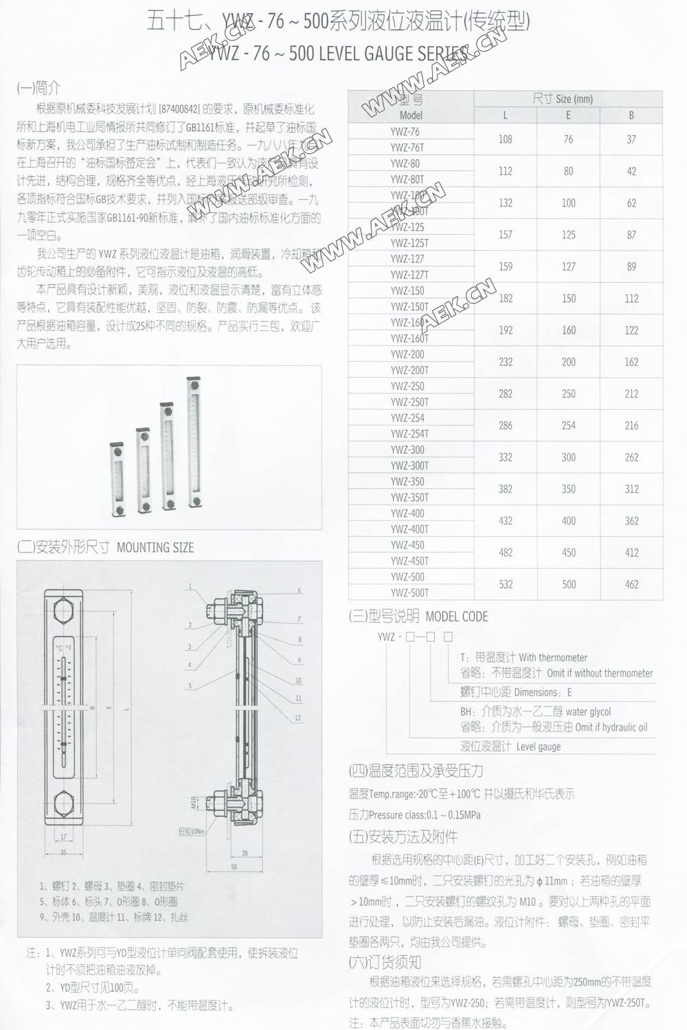 YWZ液位计,YWZ-76T,YWZ-80T,YWZ-100T,YWZ-125T,YWZ-127T,YWZ-150T