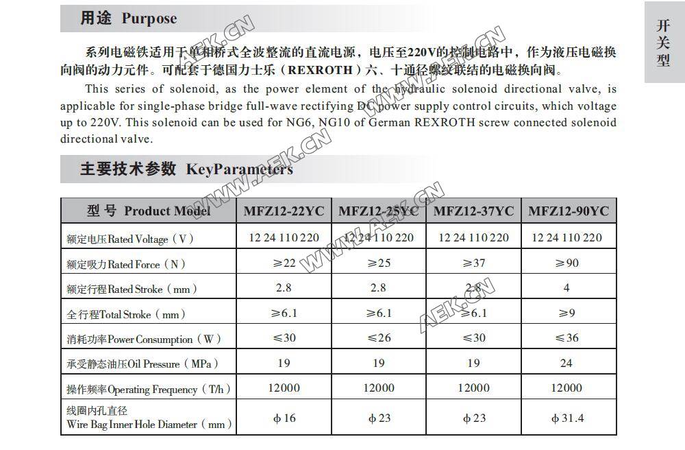电磁铁MFZ12-22YC,MFZ12-25YC,MFZ12-37YC,MFZ12-90YC