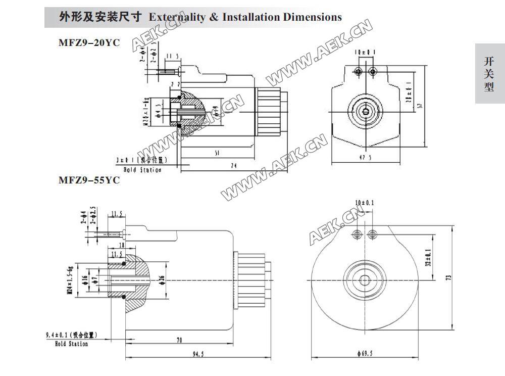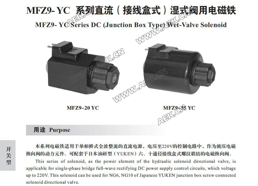 接线盒式 电磁铁MFZ9-20YC MFZ9-55YC直流湿式阀用电磁铁