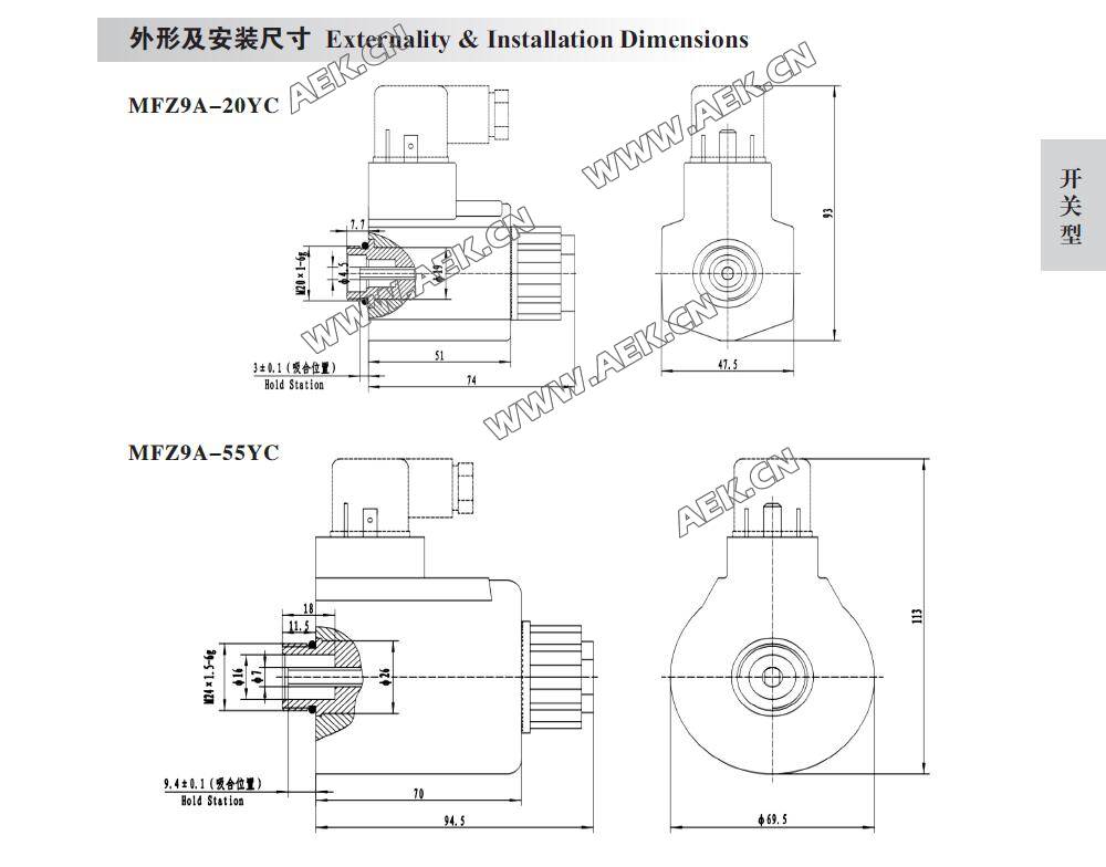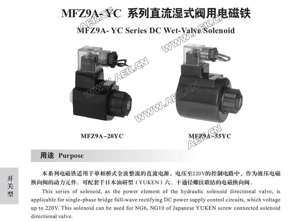 电磁铁MFZ9A-20YC MFZ9A-55YC直 流湿式阀用电磁铁