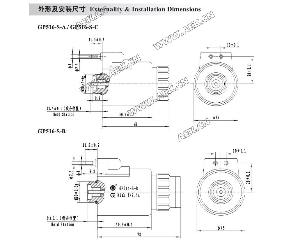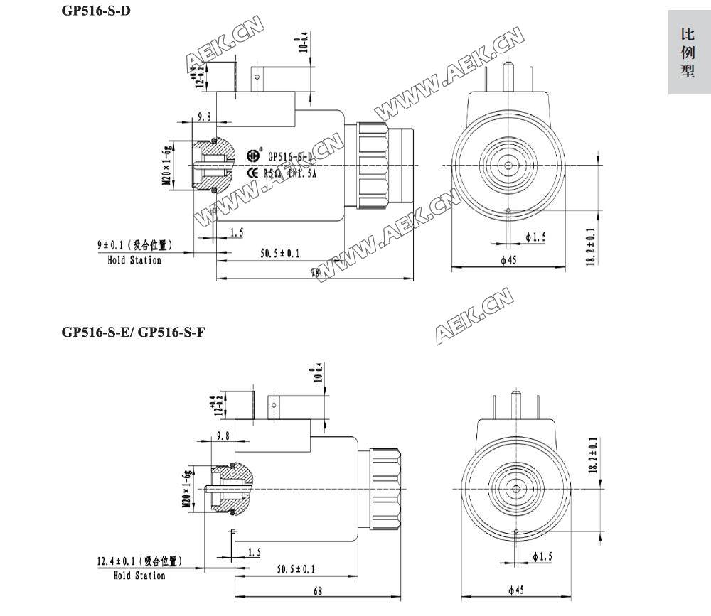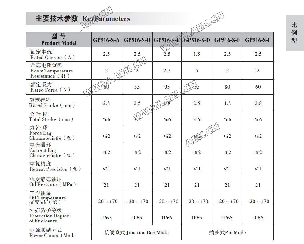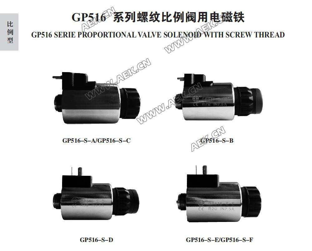 GP516比例电磁铁GP516-S-A,GP516-S-C,GP516-S-D,GP516-S-E,GP516-S-F