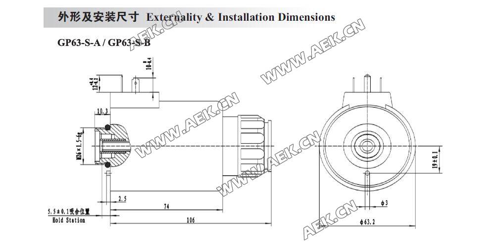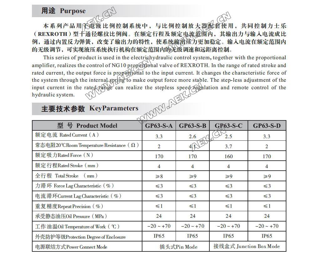 GP63系列螺纹比例阀用电磁铁 GP63-S-A GP63-S-B 阀用电磁铁