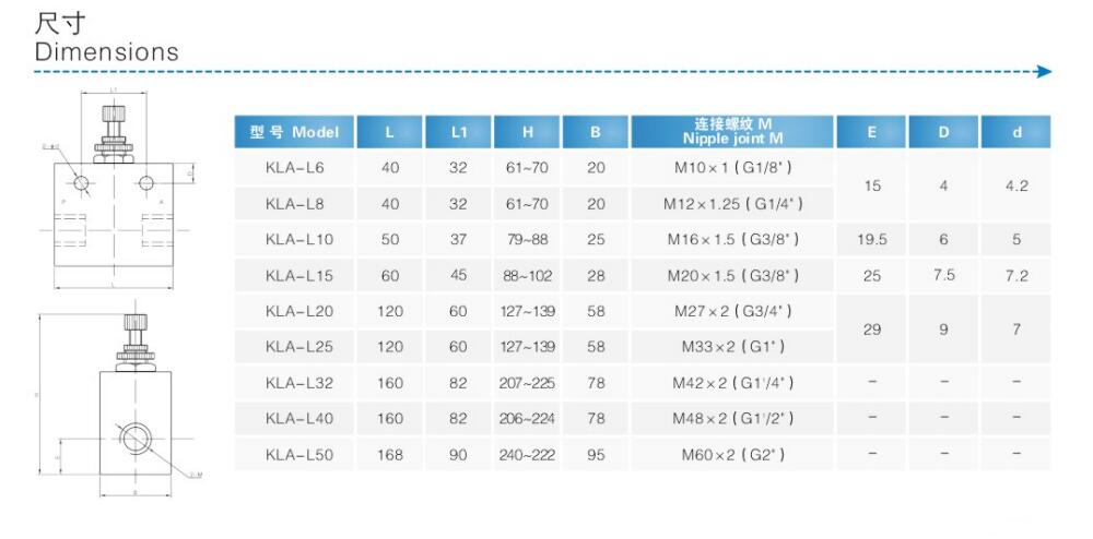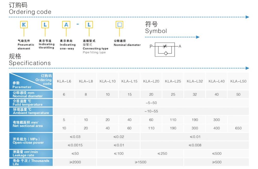 KLA单向节流阀,KLA-L6,KLA-L8,KLA-L10,KLA-L15,KLA-L20,KLA-20单向节流阀