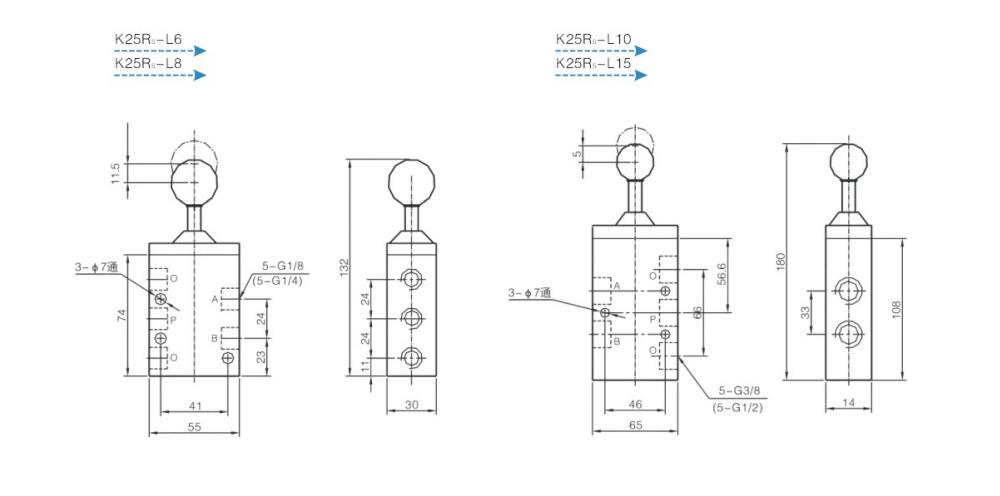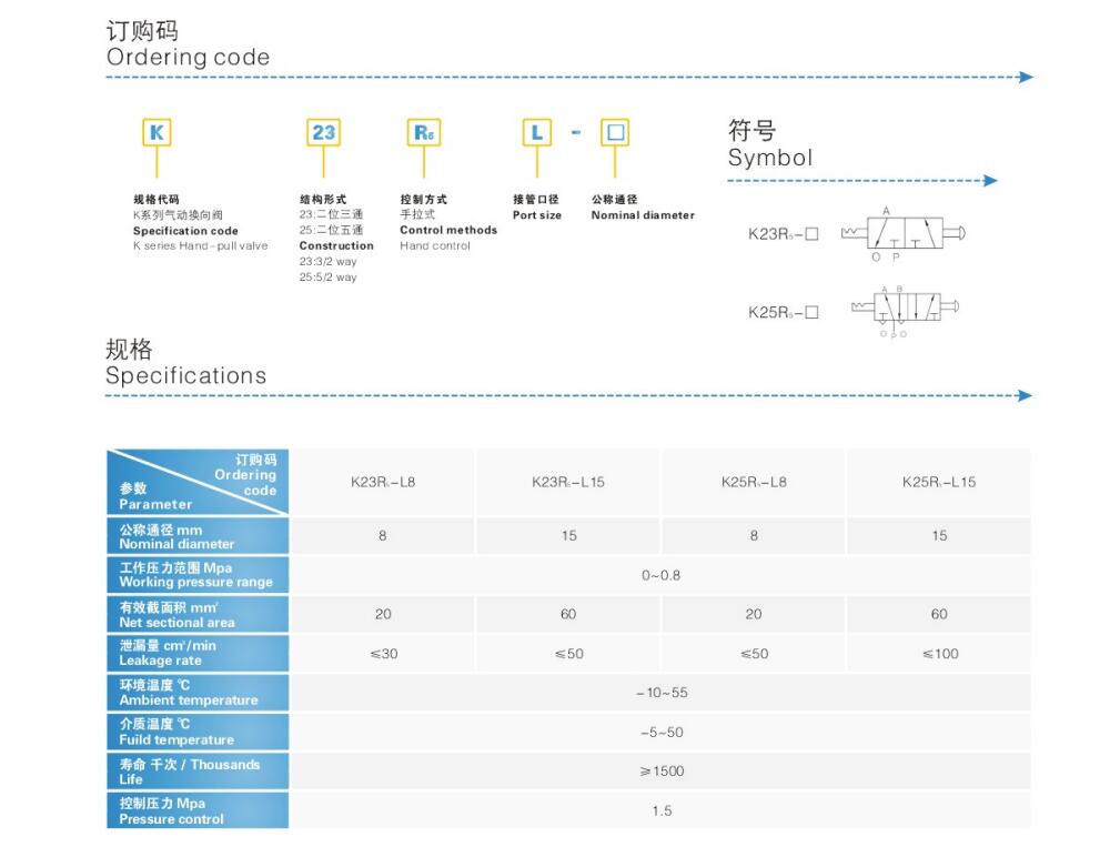 手拉阀K25R5-L6,K25R5-L8,K25R5-L10,K25R5-L15,二位五通手拉阀