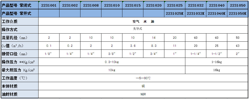 223系列二位二通膜片式电磁阀、膜片式电磁阀、先导式电磁阀