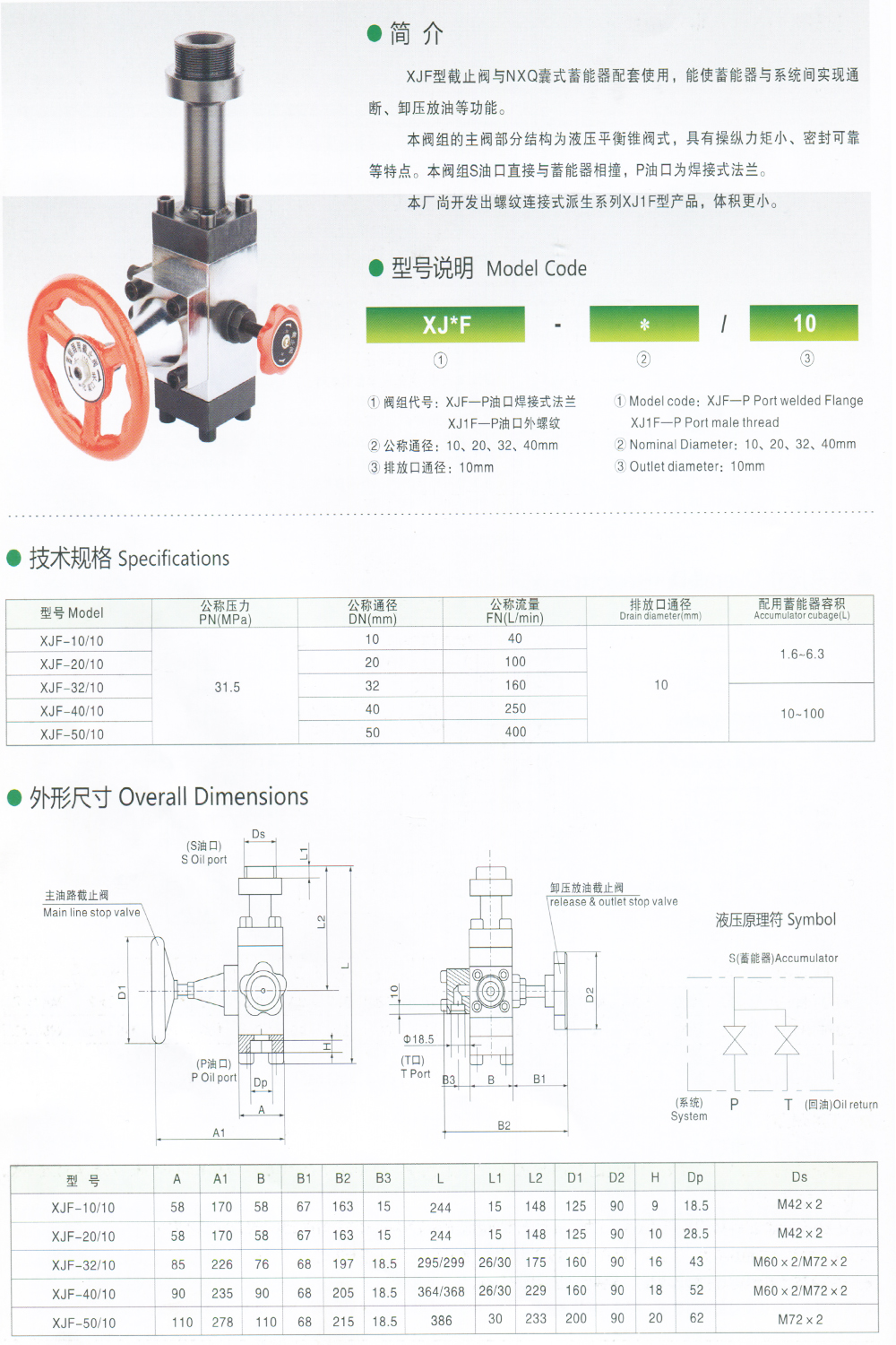 XJF蓄能器截止阀,XJF-10/10,XJF-20/10,XJF-32/10,XJF-40/10,XJF-50/10