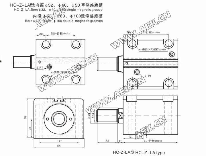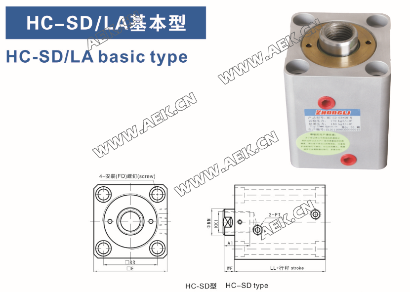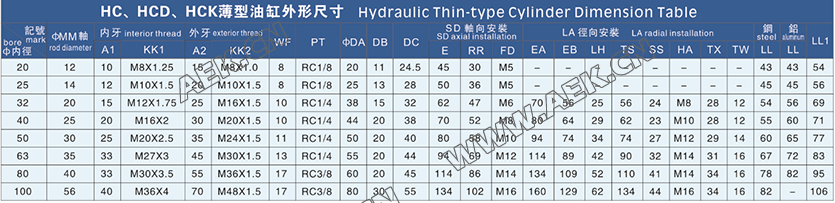 薄型油缸 HC系列薄型油缸,HC-SD-80**50-N,HC-SD-80**50-W