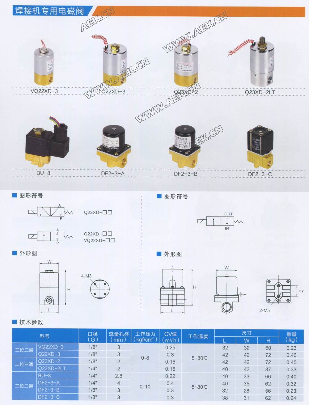 焊接机专用电磁阀VQ22XD-3,Q22XD-3,Q23XD-2,Q23XD-2T,BU-8,DF2-3-A,DF2-3-B,DF2-3-C