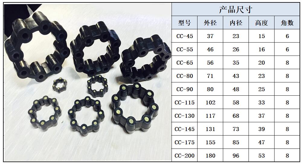 弹性胶圈 CC-45、CC-55、CC-65、CC-80、CC-90、CC-115、CC-130、CC-145、CC-175、CC-200