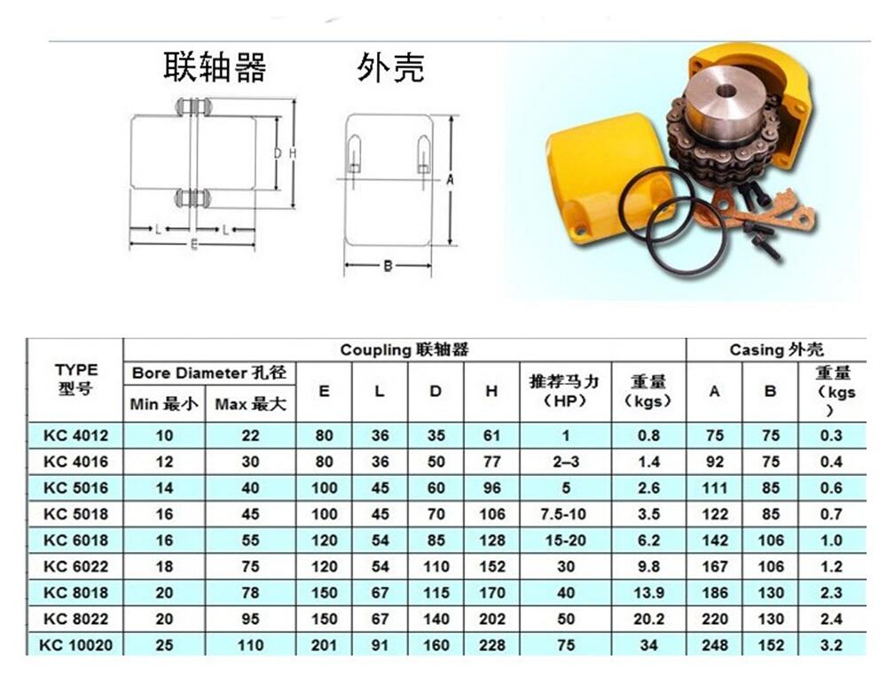 联轴器KC-4012、KC-4014、KC-4016、KC-5014、KC-5016、KC-5018、KC-6018、KC-6020