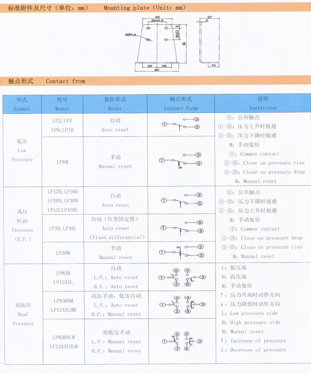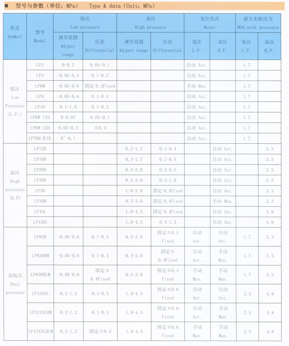 LP12D压力控制器,LP16D压力控制器,LP30压力控制器,LP30M压力控制器,LP45L压力控制器,LP45DL压力控制器,LP830压力控制器.