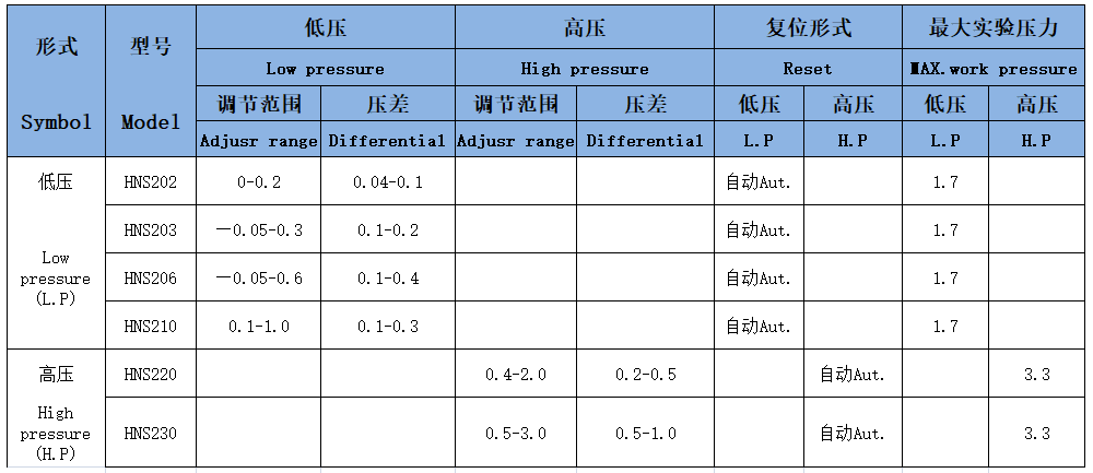 HNS-202,HNS-203,HNS-206,HNS-210,HNS-220,HNS-230压力控制器
