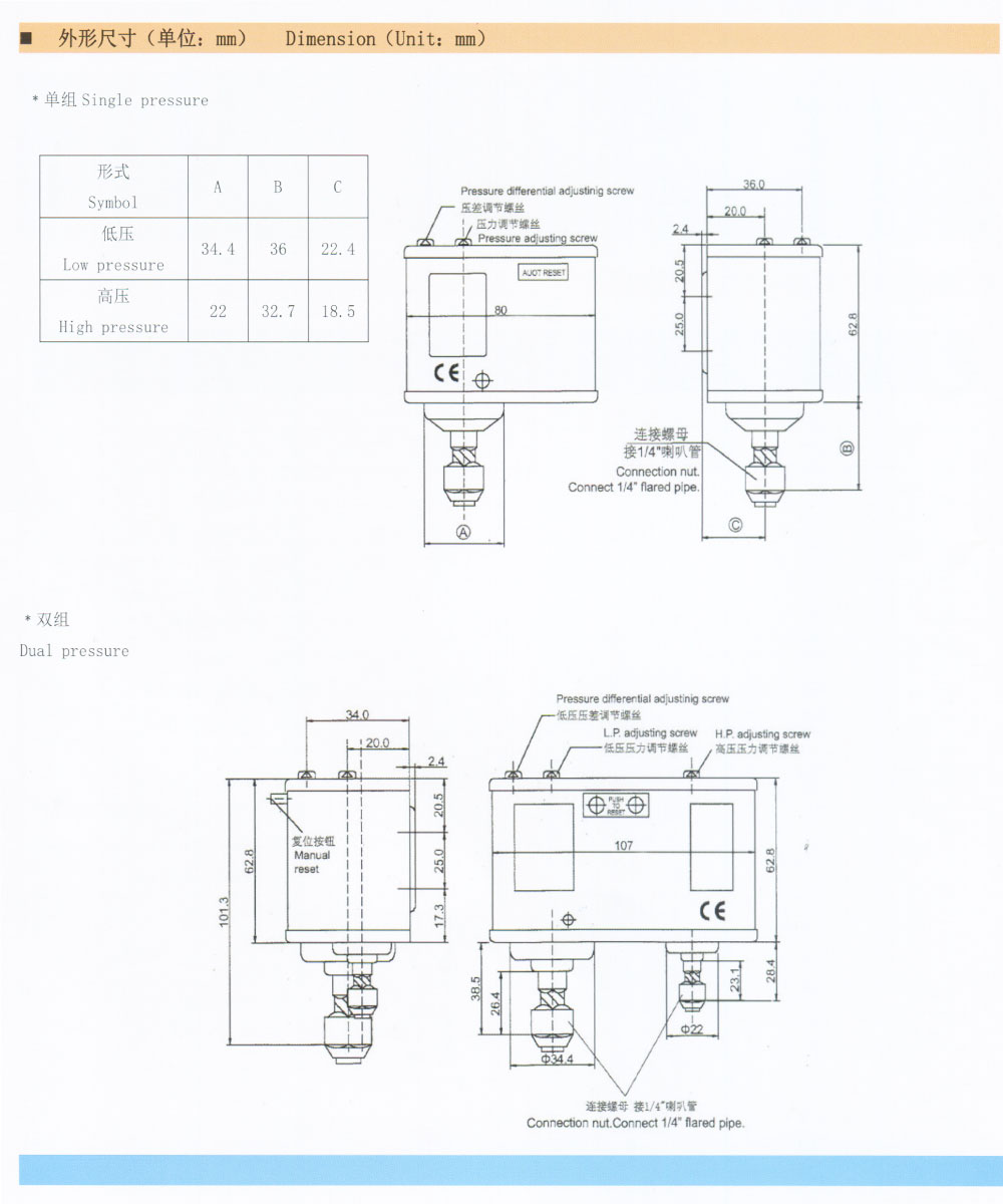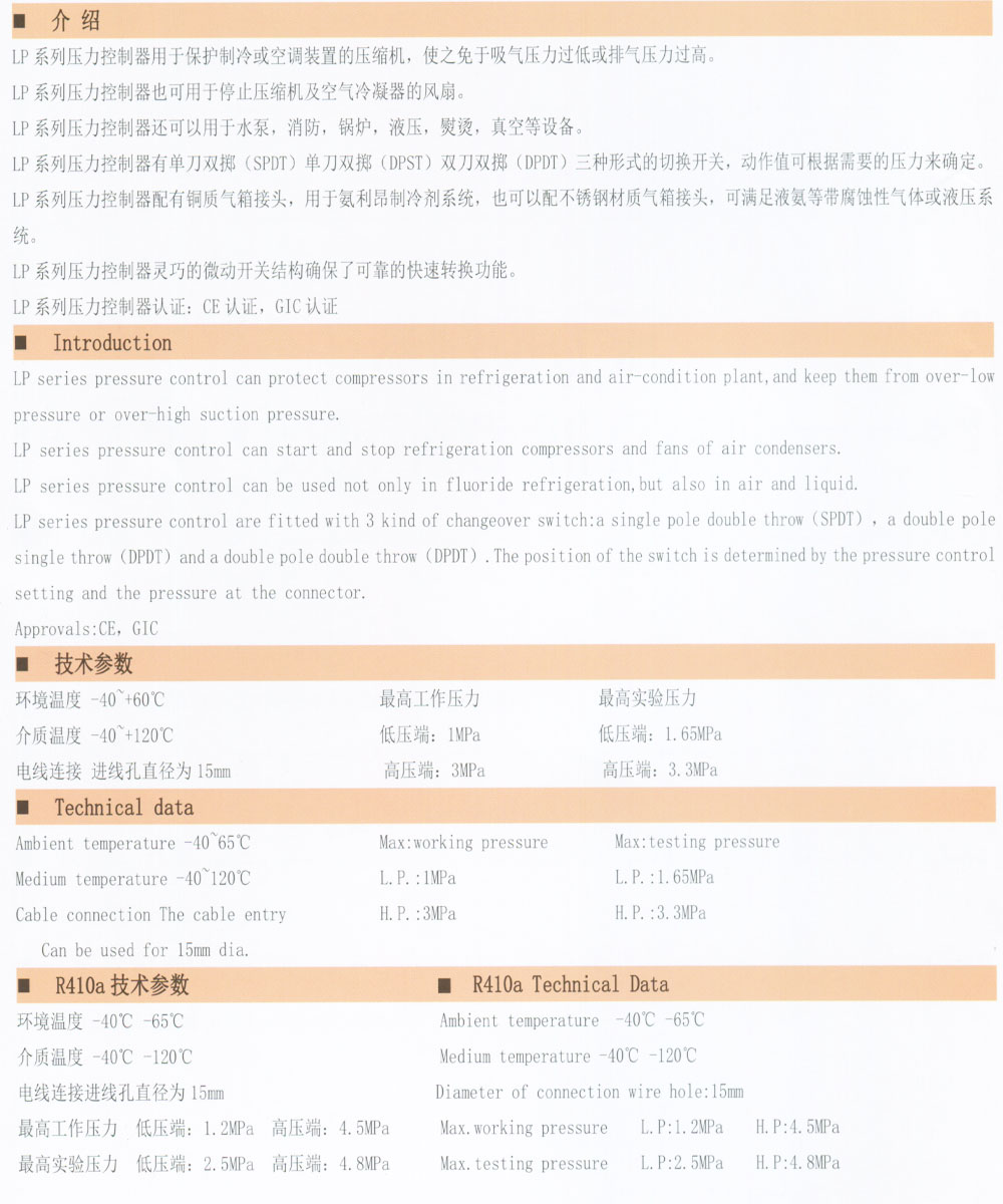 JC202,JC203,JC206,JC210,JC220,JC230 压力开关