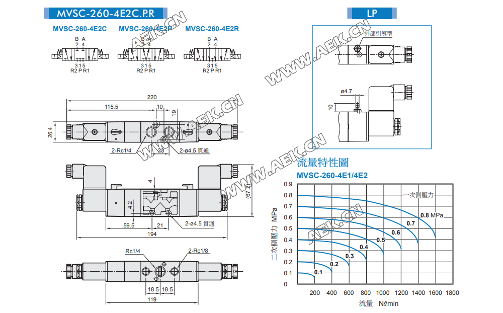 MVSC-260-4E1,MVSC-260-4E2,MVSD-260-4E1,MVSD-260-4E2,金器系列电磁阀