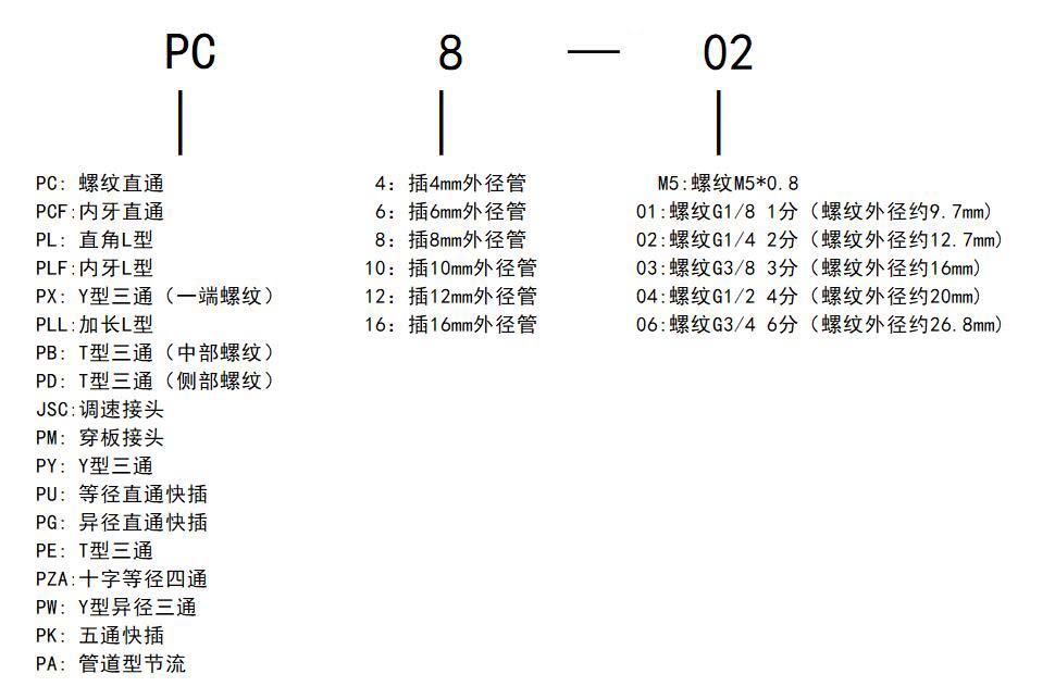PE4、PE6、PE8、PE10、PE12、PE14、PE16