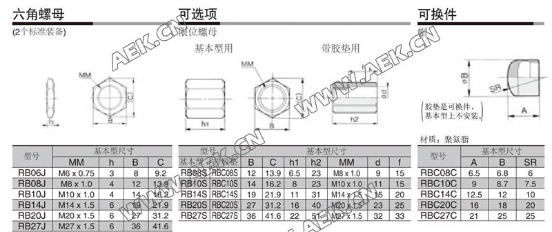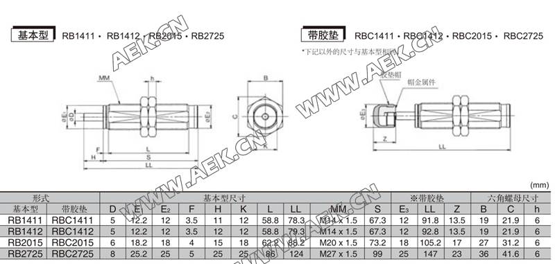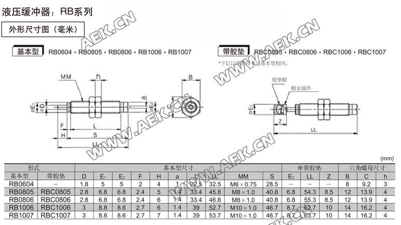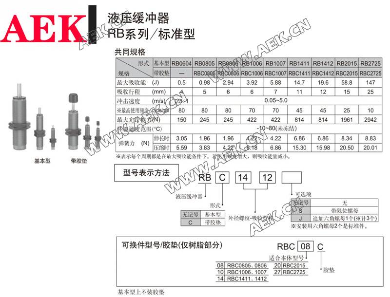 RB1007,RBC1007,RB1210,RBC1210,RB1411,RBC1411,RB1412,自动补偿式液压缓冲器