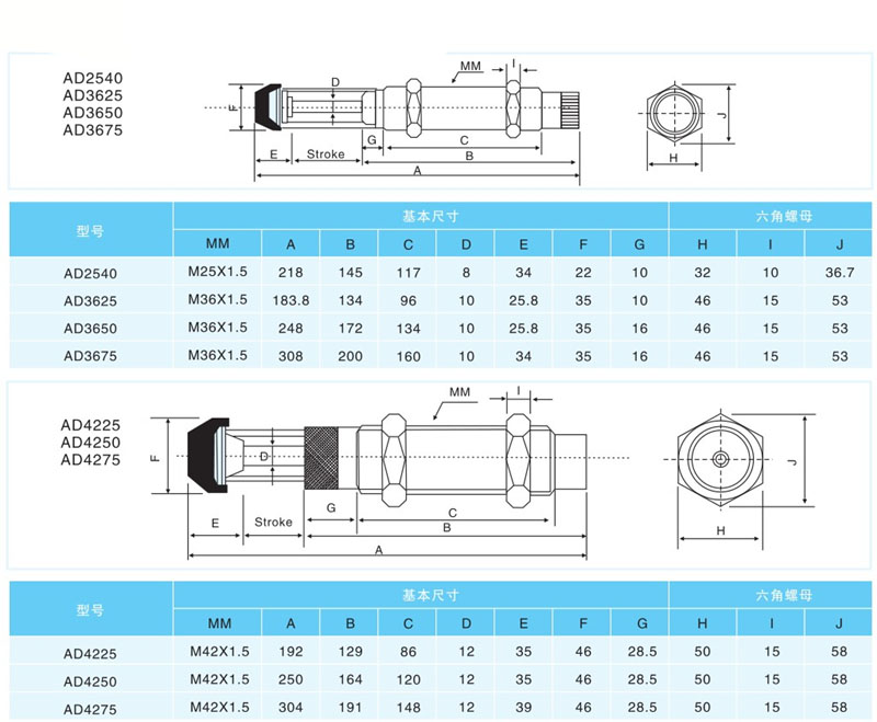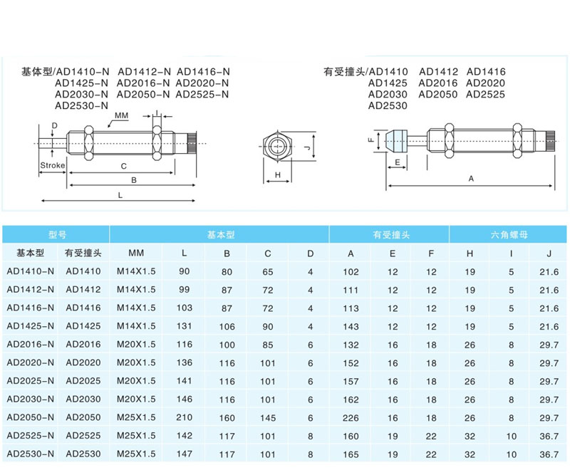 AD系列缓冲器,AD3675-5,AD4225-5,AD4250-5,AD4275-5,油压缓冲器,液压缓冲器可调