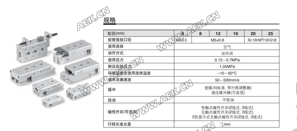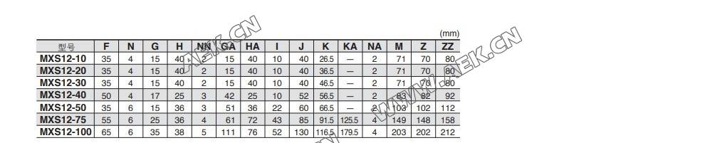 MXS滑台气缸MXS12-10,MXS12-20,MXS12-30,MXS12-40,MXS12-50,MXS12-75、MXS12-100