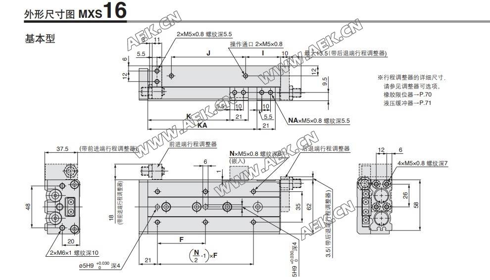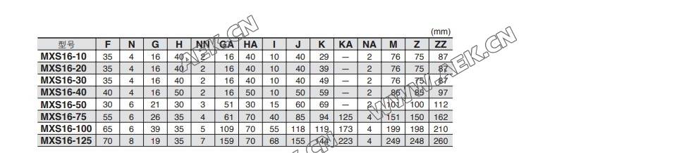 MXS滑台气缸MXS16-10、MXS16-20、MXS16-30、MXS16-40、MXS16-50、MXS16-75、MXS16-100、MXS16-125、