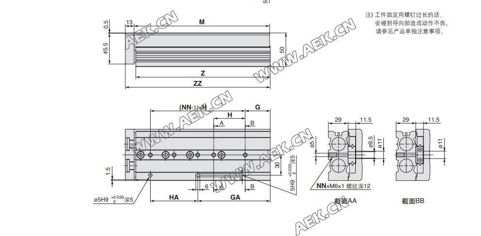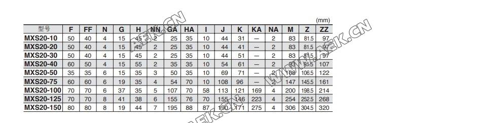 MXS滑台气缸MXS20-10、MXS20-20、MXS20-30、MXS20-40、MXS20-50、MXS20-75、MXS20-100、MXS20-125、