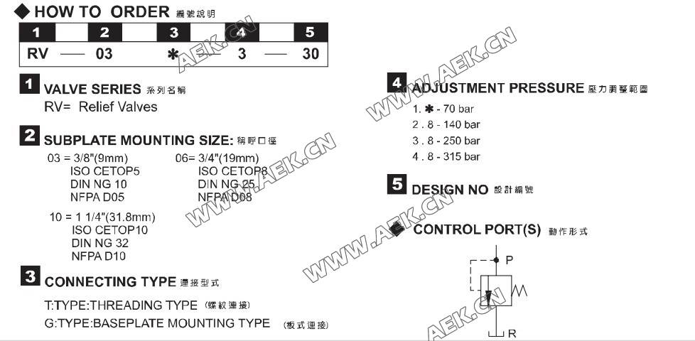 先导溢流阀RV-03G-3-50, RV-03G-3-30 , RV-06G-3-30 ,RV-06G-3-50