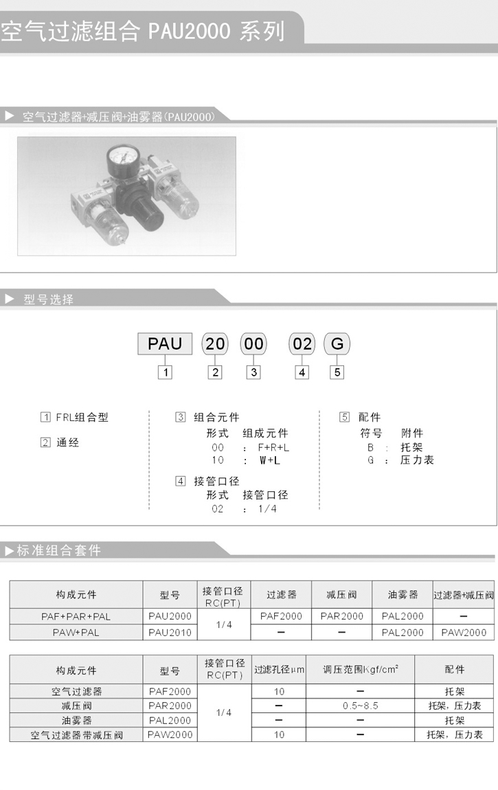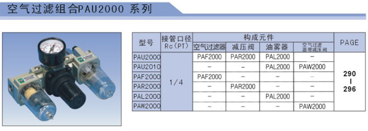 气源处理器,PAU2000-02,PAU2010-02,PAF2000-02,PAR2000-02,PAL2000-02,PAW2000-02