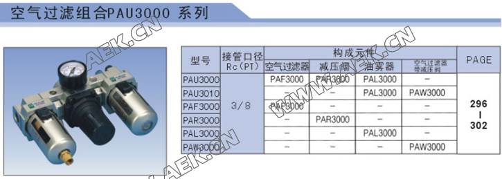 气源处理器,PAU3000-03,PAU3010-03,PAF3000-03,PAR3000-03,PAL3000-03,PAW3000-03
