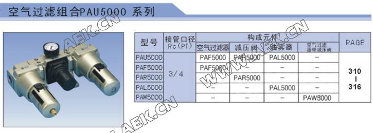 气源处理器,PAU5000-10,PAU5010-10,PAF5000-10,PAR5000-10,PAL5000-10,PAW5000-10 油雾器 过滤器,过滤减压阀,调压阀