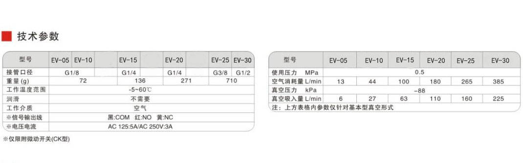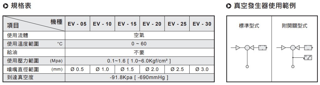AEK真空发生器 EV-05S、EV-10S、EV-15S、EV-20S、EV-25S、EV-30S