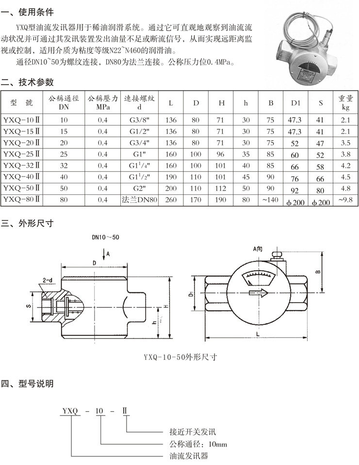 油流信号器YXQ-10,YXQ-15,YXQ-20,YXQ-25,YXQ-32,YXQ-40,YXQ-50,YXQ-65,YXQ-80,