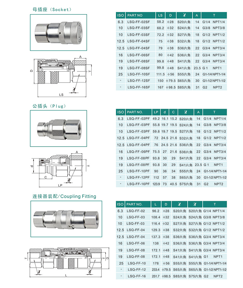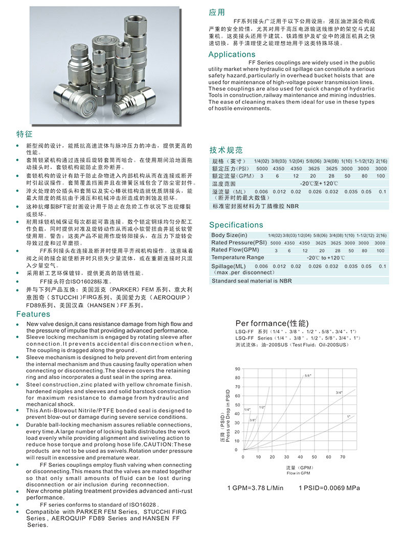 供应FF两端开闭平面式液压快速接头 ,FF-04平面快速接头
