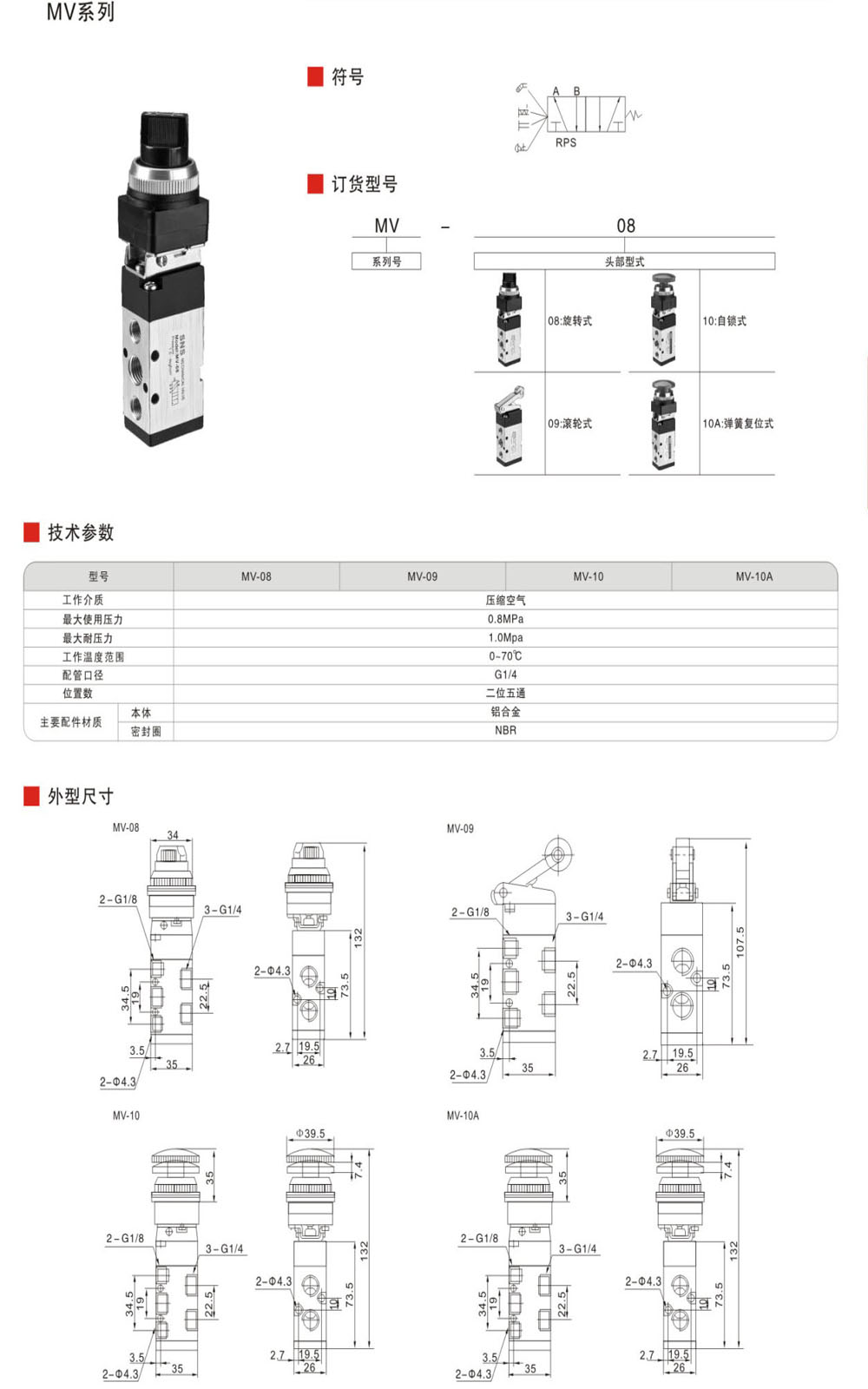 MV系列机械阀 MV-08、MV-09、MV-10、MV-10A