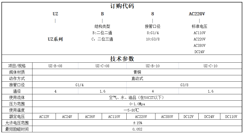 UZ电磁阀,UZ-B-08,UZ-B-10,UZ-C-08,UZ-C-10 电磁阀 二通电磁阀 二位三通电磁阀