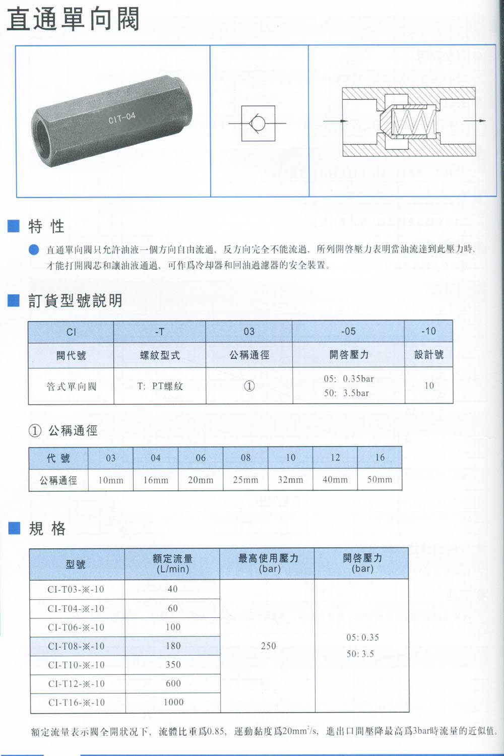 CIT单向阀,CIT-02,CIT-03,CIT-04,CIT-06,CIT-08,CIT-10,CIT-12 CIT-16