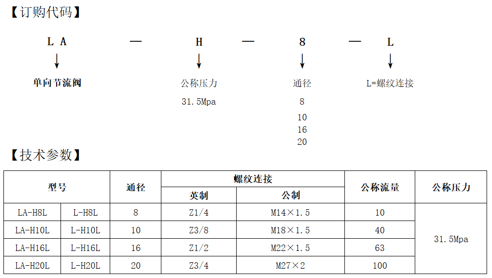 LA单向节流阀,LA-H8L,LA-H10L,LA-H16L,LA-H20L,LA-H25L,LA-H32L