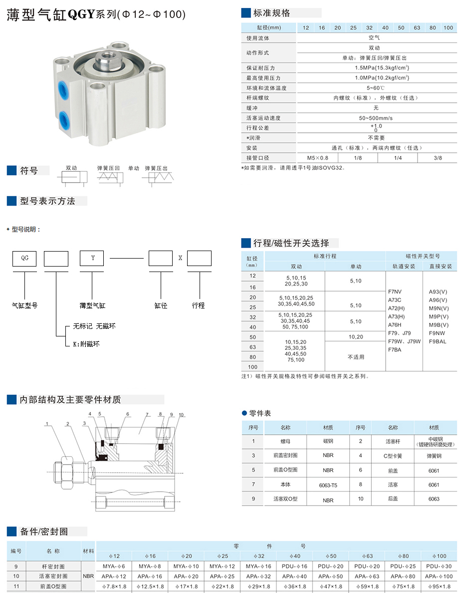 QGY气缸,QGY20*5,QGY20*10,QGY20*20,QGY20*30,QGY20*40 QGY20*50 QGY20*60 QGY系列气缸