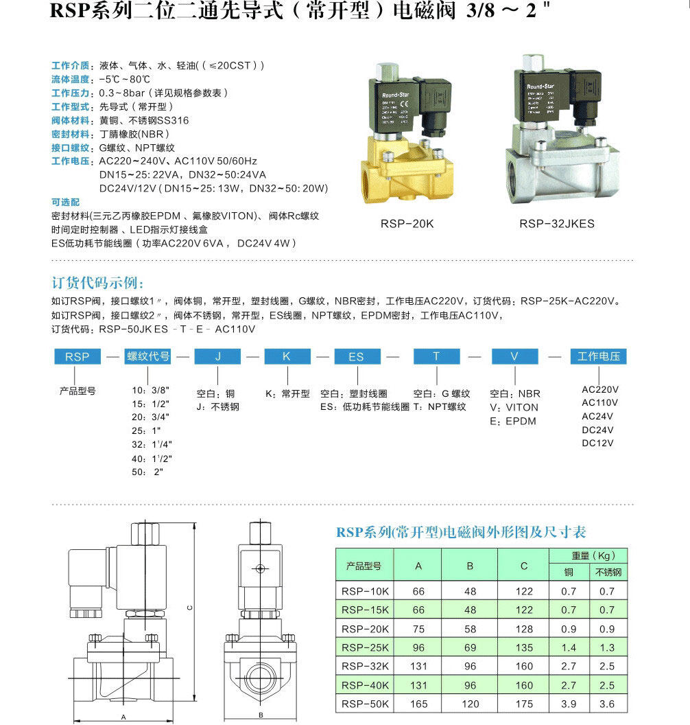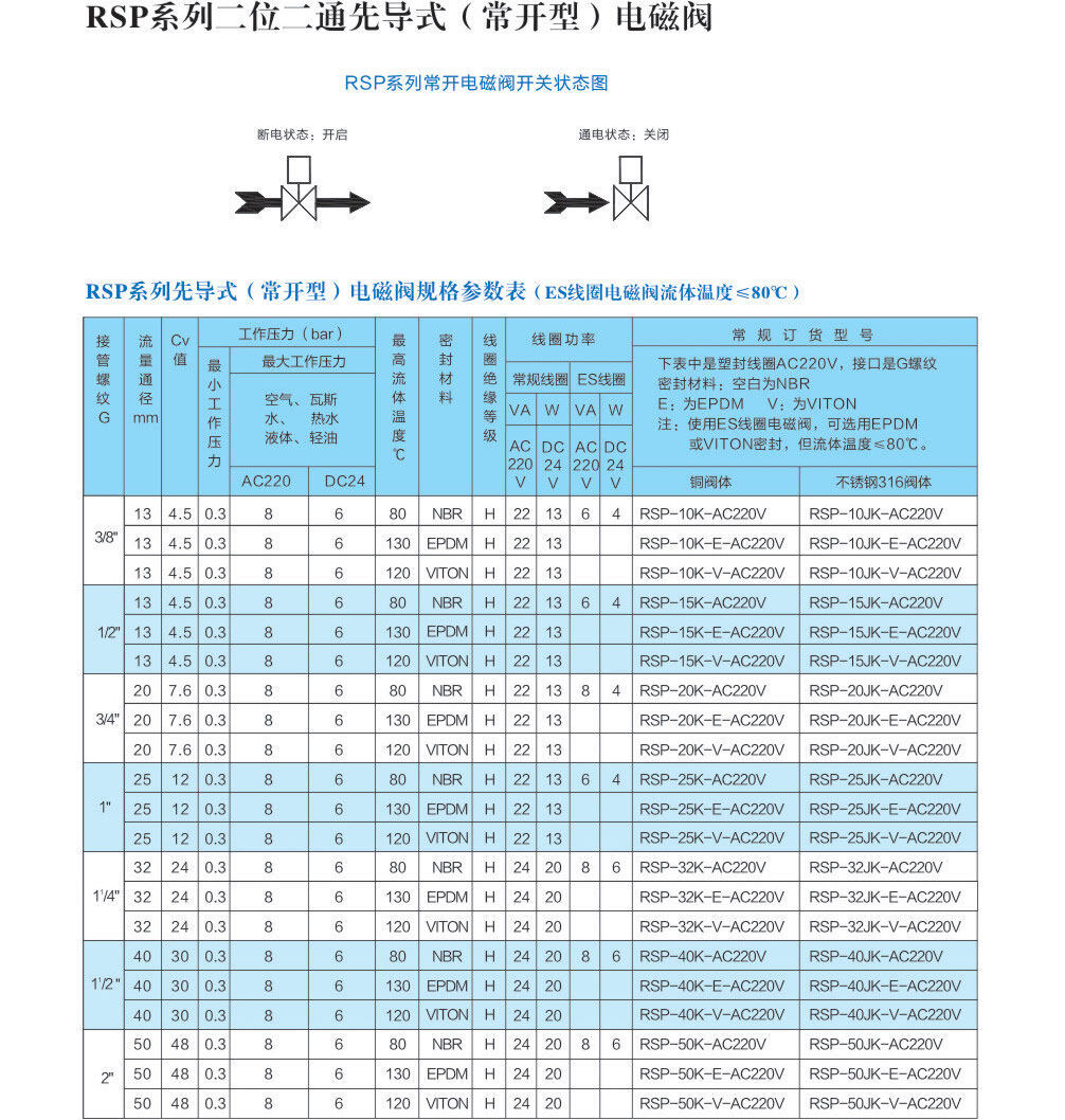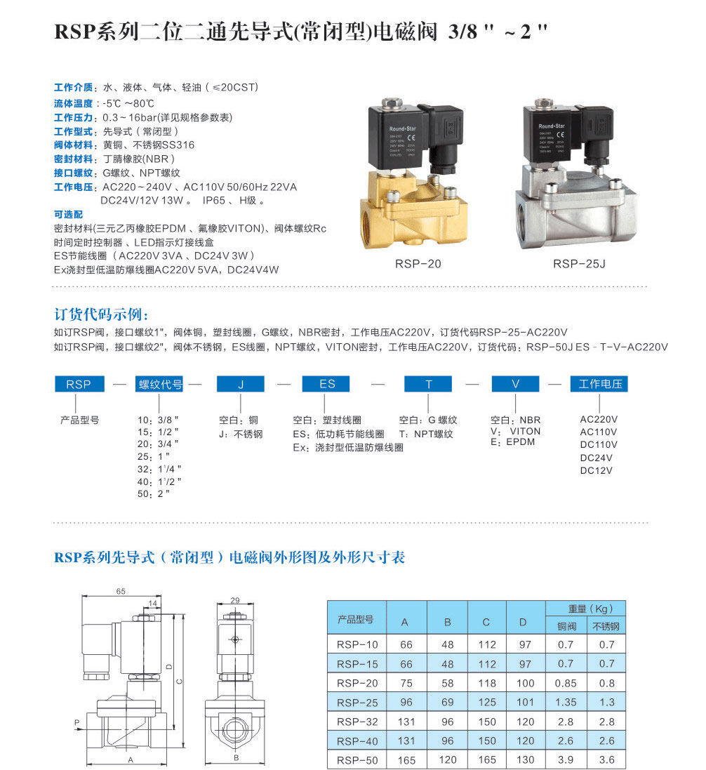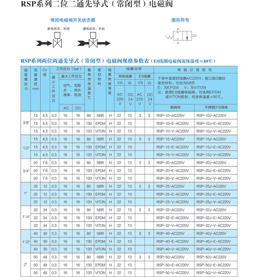 先导电磁阀RSP-10/15/20/25/32/40/50全铜/不锈钢先导电磁阀