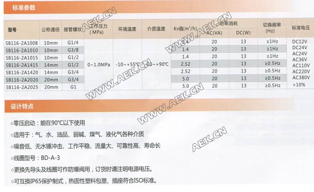 SB116系列电磁阀,SB116-2A系列电磁阀,二通电磁阀,RFS电磁阀