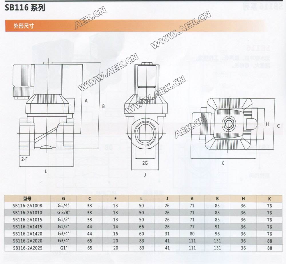 SB116-2A系列二位二通电磁阀 SB116-2A1008、SB116-2A1010、SB116-2A1015、SB116-2A1415、SB116-2A1420、SB116-2A2020、SB116-2A2025
