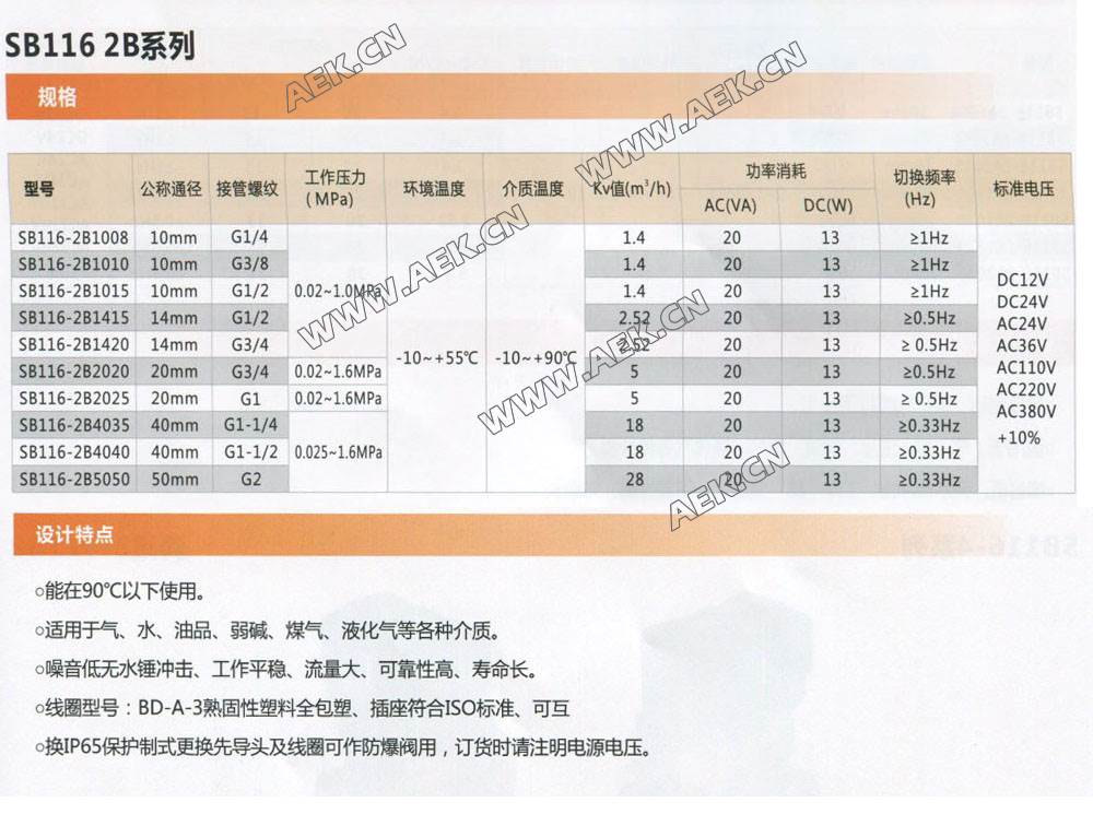 SB116系列电磁阀,SB116-2B系列电磁阀