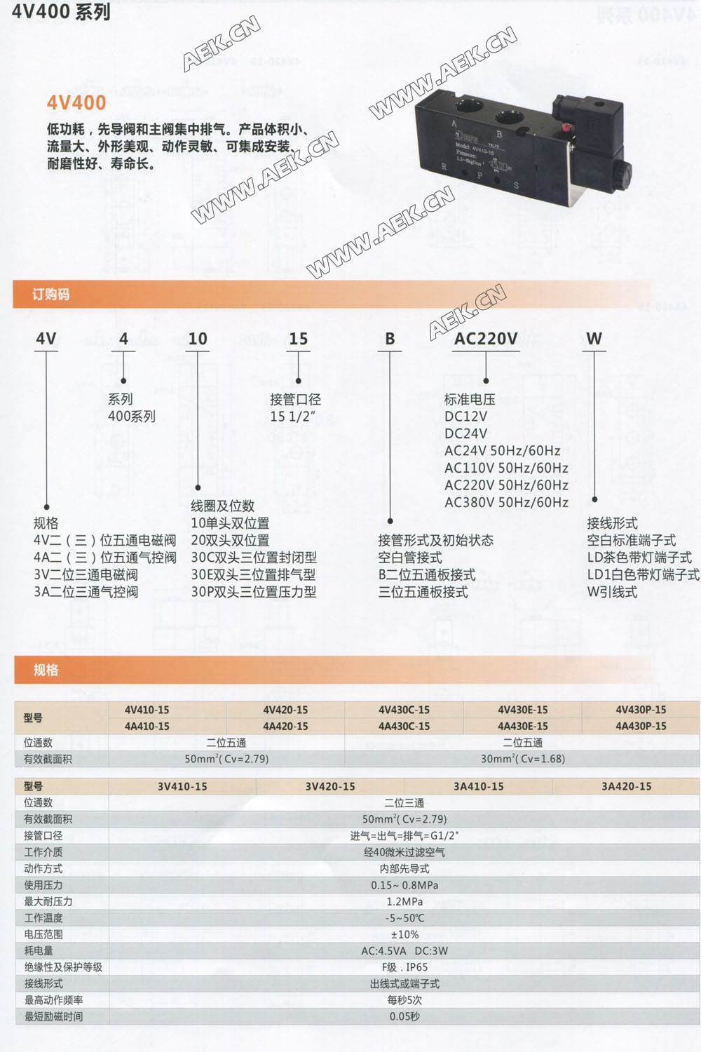 RFS电磁阀,4V410,4V410-15二位五通电磁阀,RFS电磁换向阀