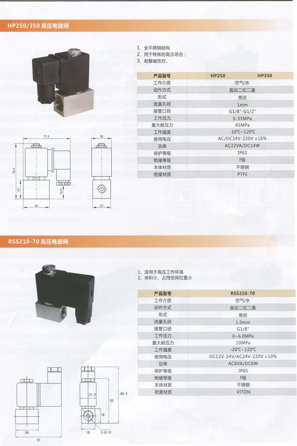 RFS特种电磁阀,HP250高压电磁阀,HP350电磁阀,RSS210-70高压电磁阀