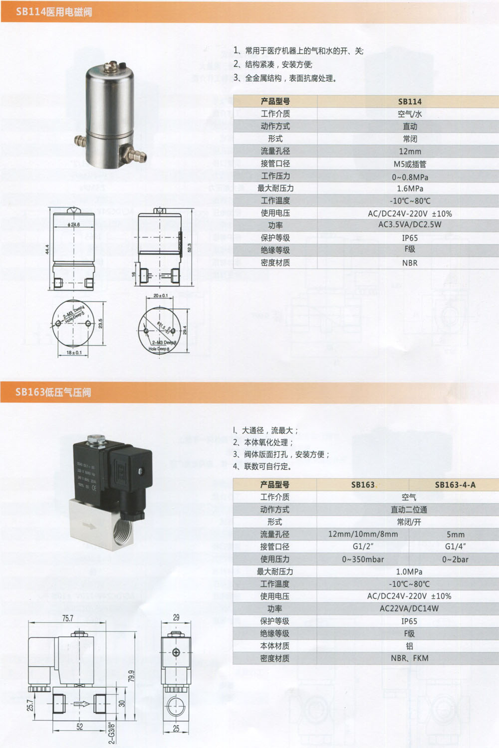RFS特种阀,SB163低压气阀,RSB114医用电磁阀