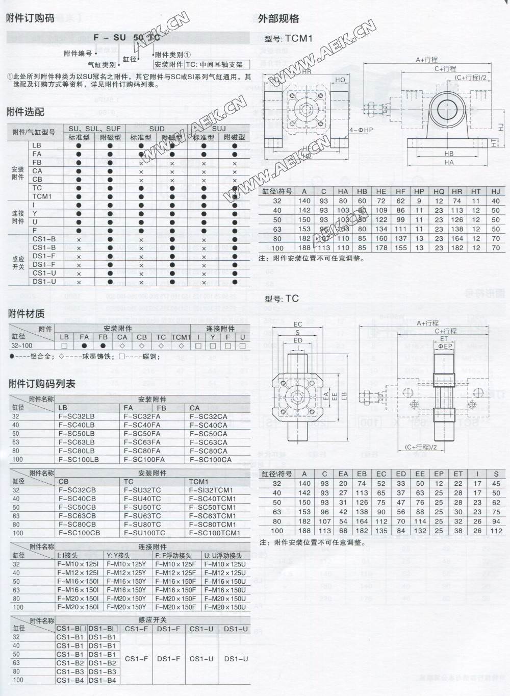 SU气缸安装附件FA,FB,CA,CB,TC,LB,Y接头,I接头